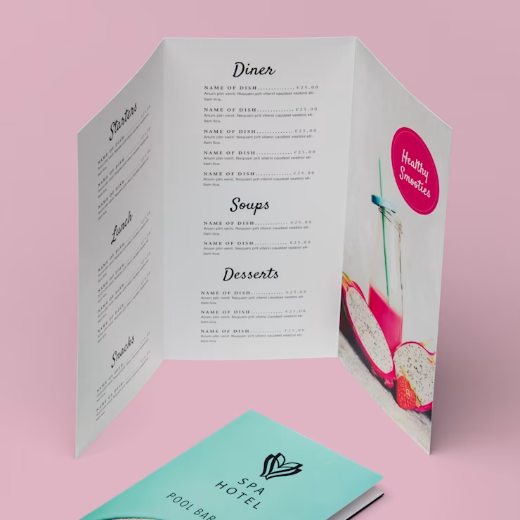Of je nu gaat voor een compacte menukaart A6 of een ruime menukaart op A3-formaat, bij ons vind je altijd de perfecte kaart voor jouw horecazaak of evenement. Kies uit gevouwen of ongevouwen uitvoeringen en geef jouw menukaart de uitstraling die past bij jouw concept. Onze menukaarten worden dubbelzijdig in full color bedrukt voor een haarscherpe weergave van jouw gerechten, dranken of specials. Voor extra bescherming kun je kiezen voor een scheur- en watervast mat- of glanslaminaat.